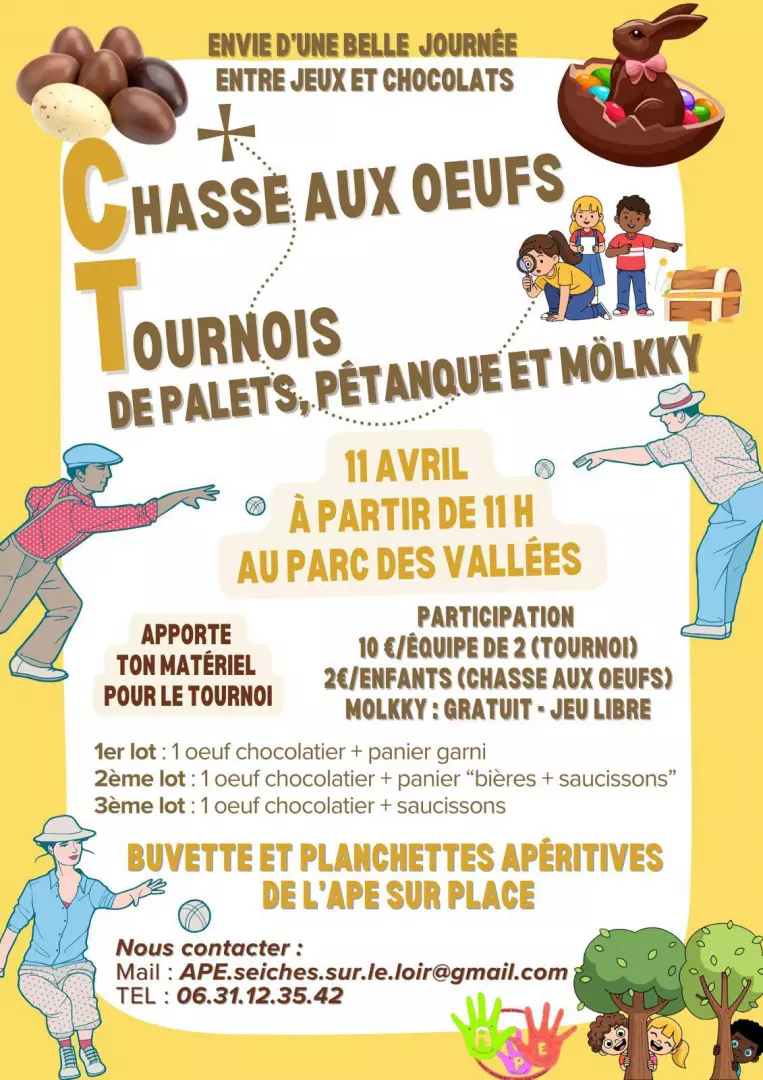 Chasse aux œufs et tournois de Palets, Pétanque et Mölkky à Seiches-sur-le-Loir