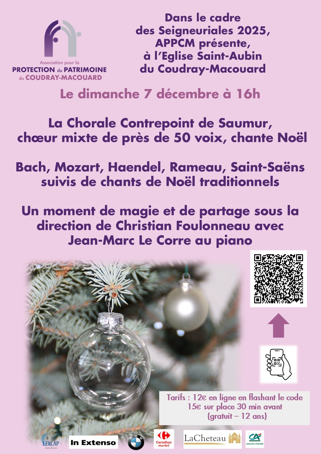 L'Association pour la Protection du Patrimoine du Coudray-Macouard est heureuse de vous présenter son prochain événement dans le cadre des "Seigneuriales 2025" : il s'agit de son concert de Noël.