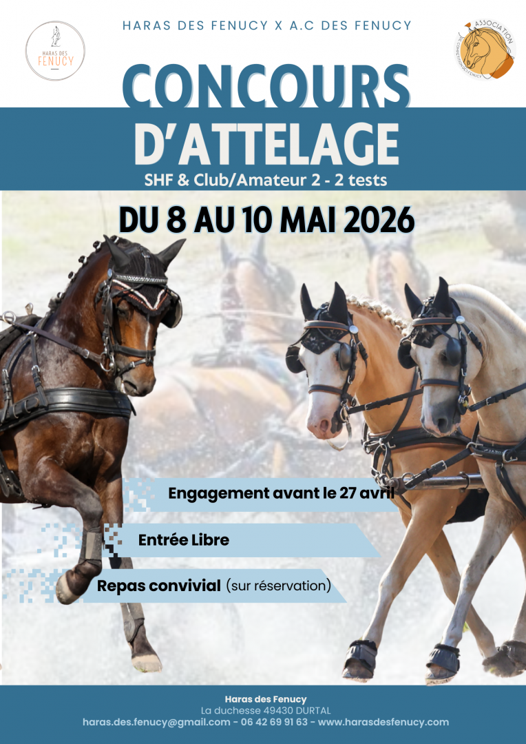 Concours d’Attelage au Haras des Fenucy à Durtal, un événement convivial et ouvert à tous, dont l'entrée est libre et gratuite.
