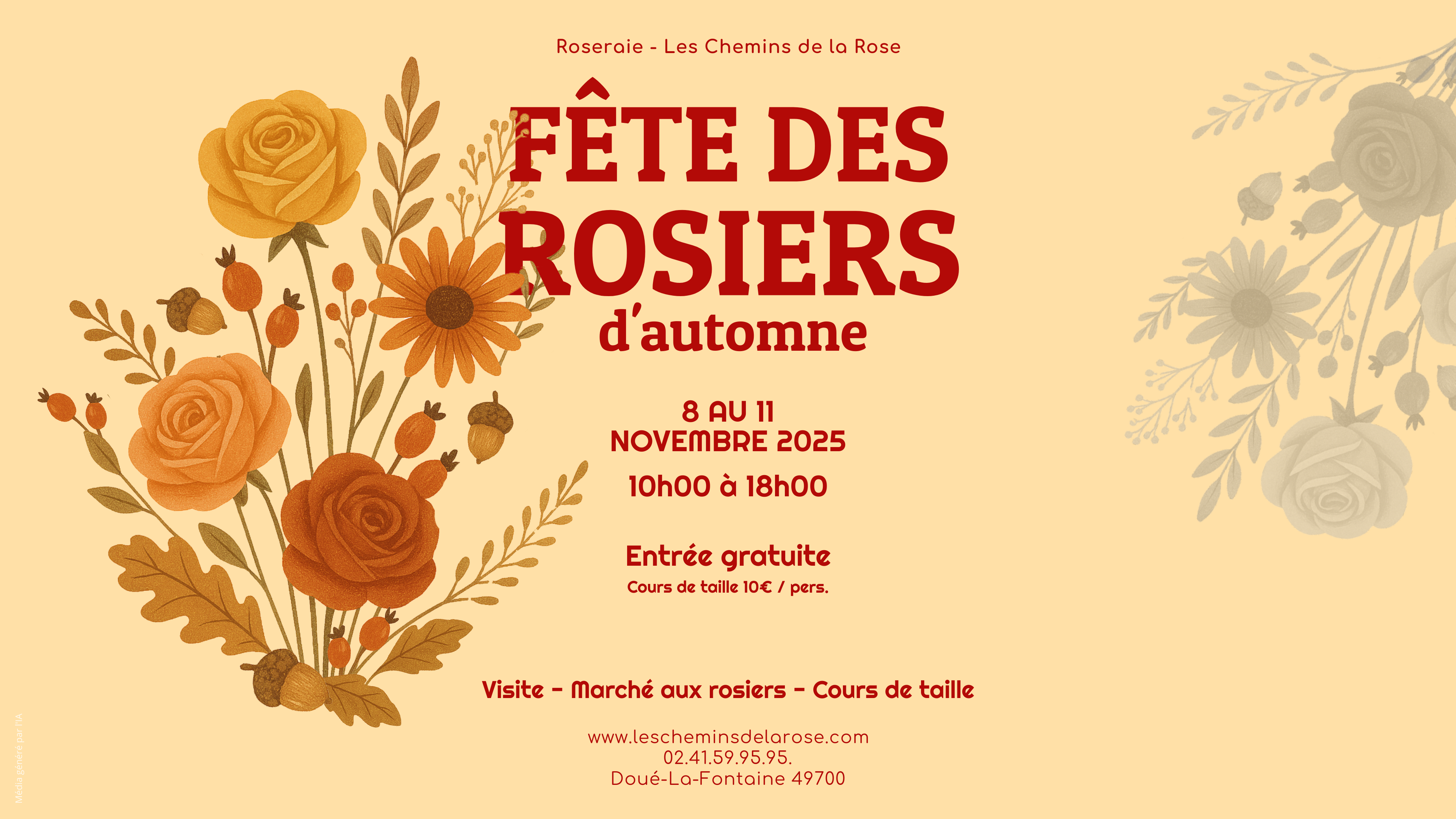 La Fête des Rosiers d’Automne est l’occasion idéale de préparer votre jardin pour la saison prochaine et de vivre un moment privilégié dans un cadre fleuri et authentique.