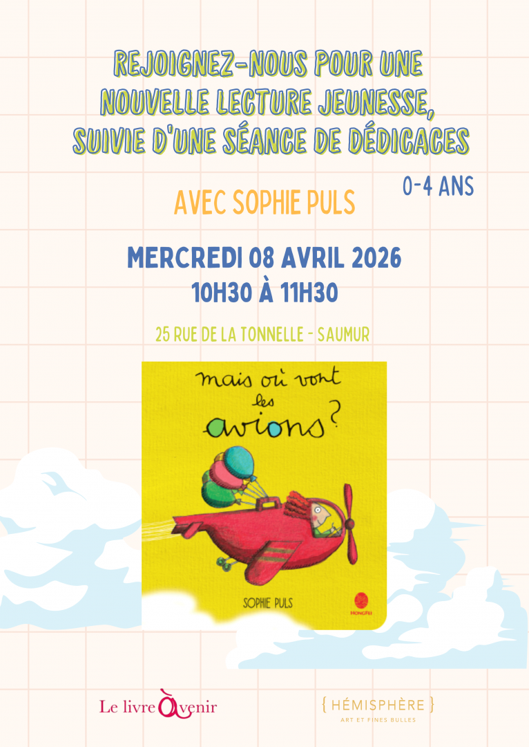 Rendez-vous à la galerie Hémisphère pour une nouvelle lecture jeunesse, suivie d'une séance de dédicace par Sophie Puls.Sophie Puls lira ses 2 romans pour enfants (0-4 ans), et vous les dédicacera ensuite avec plaisir.