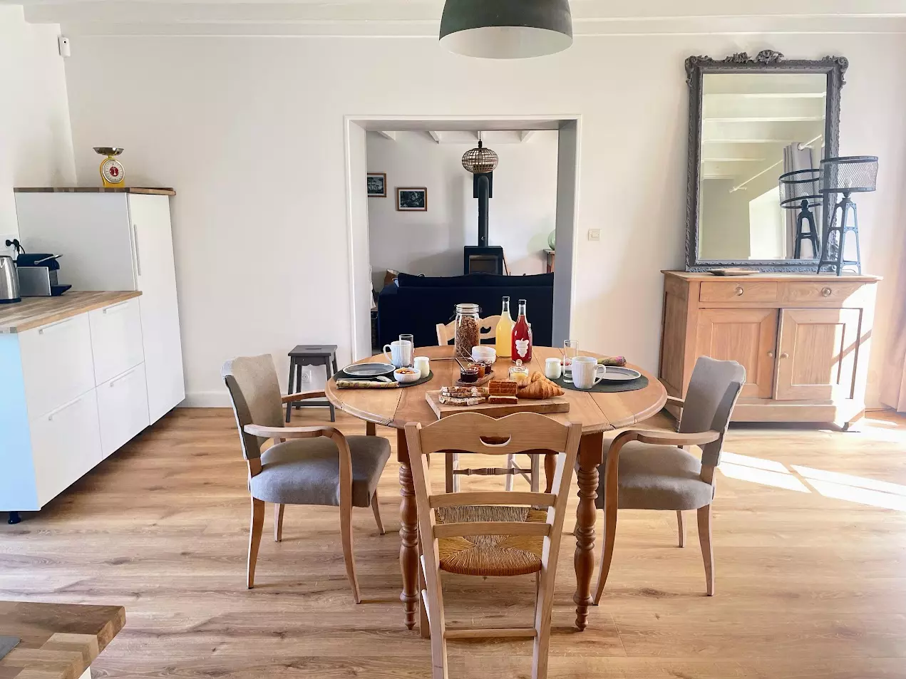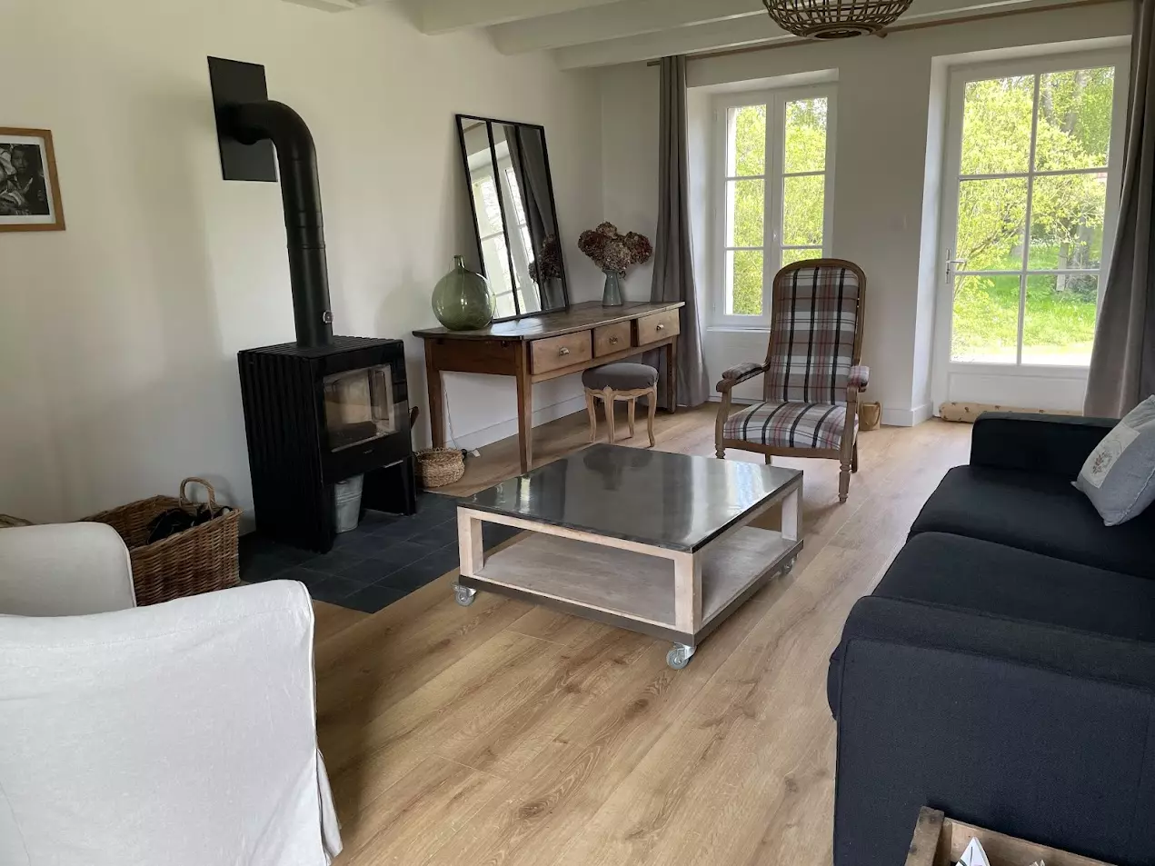 Pour une pause cocooning, le salon est équipé d'un poêle à bois. Parfait pour les soirées fraiches ou journées d'hiver.
