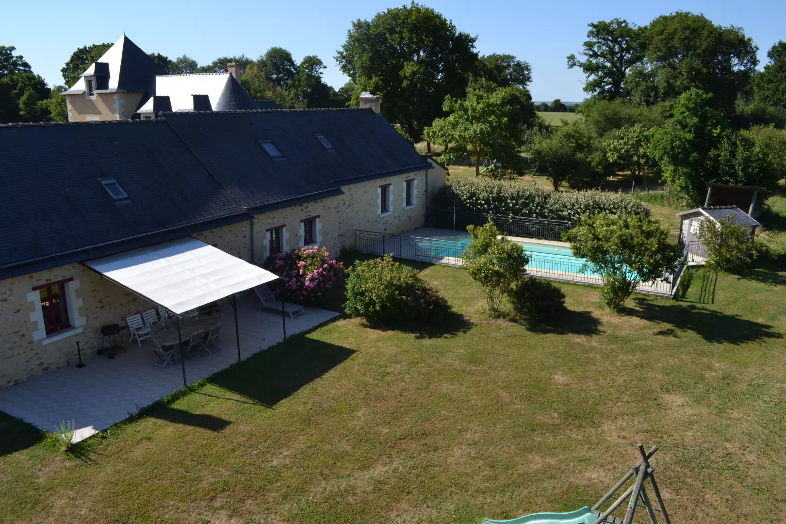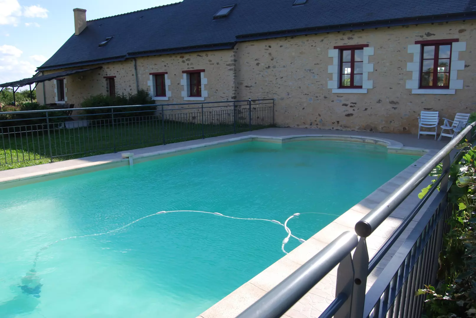 Grande maison avec piscine privée dans la campagne en Anjou. Gîte de groupe en Maine et Loire avec piscine privée aménagé pour 10 personnes à la campagne.