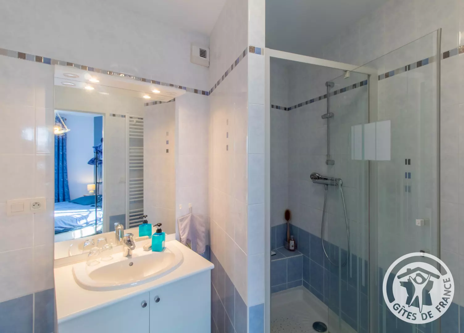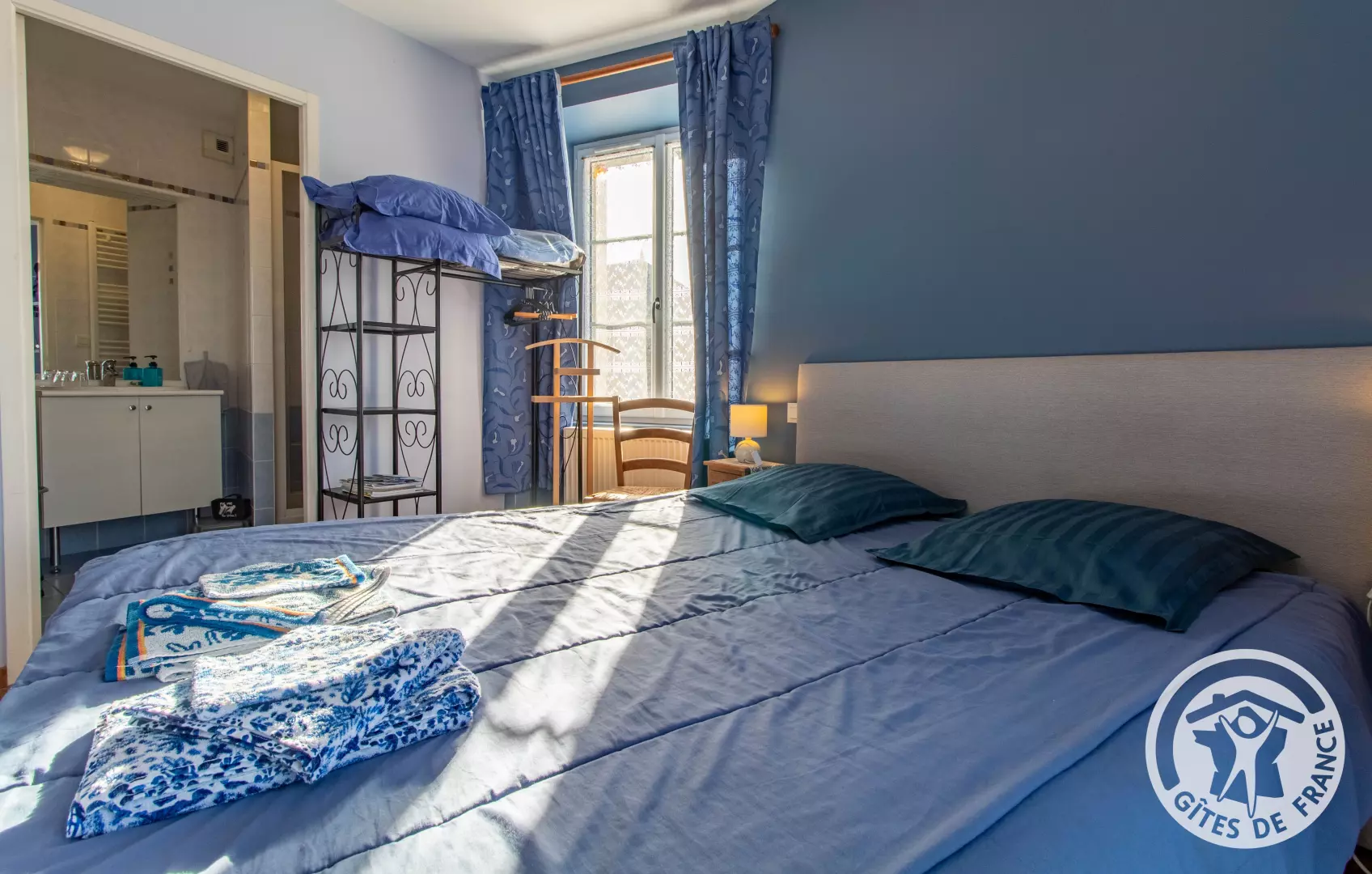 - La suite familiale « La Colibri » composée de deux chambres indépendantes : 1 avec avec un lit 160cm X 200cm, et la seconde "La Mésange" avec deux lits de 90cm X 200cm pouvant former un lit 180cm X 200cm. La salle d'eau avec douche et les WC, situés dans la même pièce, sont non communicants à ces chambres mais juste en face. Si vous souhaitez réserver les deux chambres pour 2 personnes, le tarif est de 130€/nuit, dans ce cas, merci de contacter directement le service de réservation des Gîtes de France.