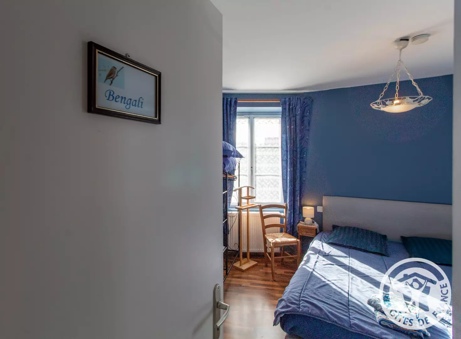 - La chambre « Bengali », avec un lit de 160cm X 200cm, d'une salle d'eau avec douche et des WC séparés, en accès direct de la chambre.