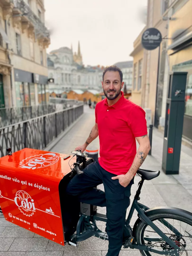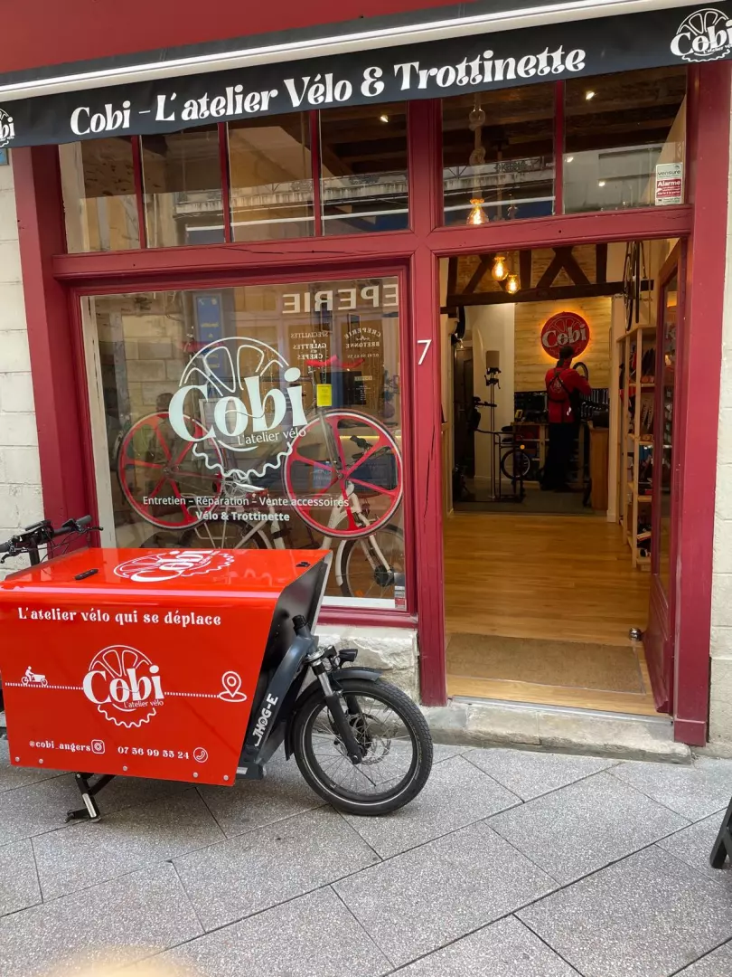 COBI est un atelier vélo qui se déplace, conçu pour simplifier le quotidien des vélotafeurs et cyclotouristes sur la ville d'Angers. Nous nous déplaçons à vélo cargo jusqu’à 5km depuis la Place du Ralliement pour entretenir ou réparer votre véhicule.