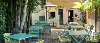Café-cantine familial en service continu pour un simple verre comme pour un déjeuner, goûter ou même diner. Plats et desserts faits maison, produits locaux. Intérieur cosy et terrasse ombragée naturellement.