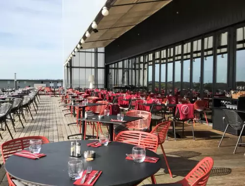 Profitez d’une terrasse panoramique avec vue sur l’eau, idéale pour un déjeuner ensoleillé ou un dîner romantique. Le cadre naturel, entre verdure et reflets aquatiques, crée une atmosphère propice à la détente et à la convivialité.